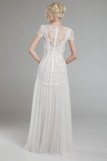 The mix of delicate tulle and French lace, accompanied with a beautiful hand-embellished detail across the waist, creates a dreamy and sophisticated style. Chiffon lining makes the feel of this gown light and comfortable, whilst the unique shape of Leda creates a chic silhouette.