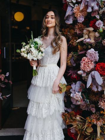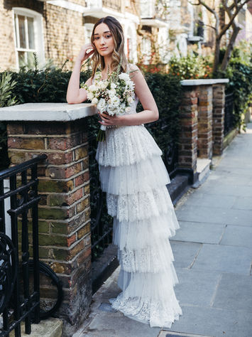 Demi is every modern brides’ dream. Fashion forward, tulle tiers create a layered skirt adding the illusion of height and movement. Detailed floral French lace top with an embellished Swarovski crystal adorned belt completes this stylish gown. Such a light dress, which is perfect for a sunny Summer wedding or paired with the romantic Demi top easily transformable for a cooler wedding date. The long sleeved top is an easy transition to create a day to evening wedding look.