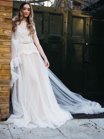 Playful style mixed with a sleek silhouette makes Jazz a stunning gown that is perfect for different styles of weddings. The A-line skirt had gorgeous movement whilst the unique top has flattering draping details. Wear it with a flower crown for a bohemian feel or wear it with a sleek bun and minimal accessories for an elegant function.